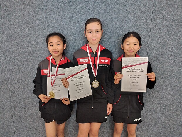 Bei den Mädchen 13 wurde zuerst in zwei 8-er Gruppen gespielt, wobei dann jeweils Platz 1 bis 4 und Platz 5 bis 8 in einer neuen Gruppe die Platzierungen ausspielten. Vivian spielte sich souverän mit Platz 4 in der Vorrundengruppe in die Gruppe der letzten 8. Hier muss noch erwähnt werden, dass Vivian mit den späteren Zweit- und Drittplatzierten gleich zwei Hochkaräter:innen in der Gruppe hatte. Äußerst stark spielte Vivian gegen die spätere Fünfte, verliert nach knappen Sätzen 1:3, gewinnt aber dafür gegen die spätere Sechste des Turniers mit 3:1. So wurde es am Ende ein solider 8. Platz👏🏻. Damit erreichte Vivian das Ziel…. eine Platzierung in den Top 10.