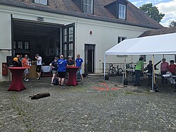 Für die gute Laune war reichlich gesorgt! Nicht nur die Kids hatten riesigen Spaß auf der beliebten Hüpfburg, auch für das leibliche Wohl der Erwachsenen war bestens gesorgt. Die Abteilungen haben sich richtig ins Zeug gelegt: Die Motorsportler sorgten am Bierstand mit der erfrischenden Himbeer-Bowle für das absolute Highlight. Parallel dazu gab es leckere Würstchen vom Grill der Teppichcurler, eine frische Salatbar der Abteilung Turnen und einen unwiderstehlichen Kuchenbasar der Abteilung Prellball.