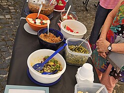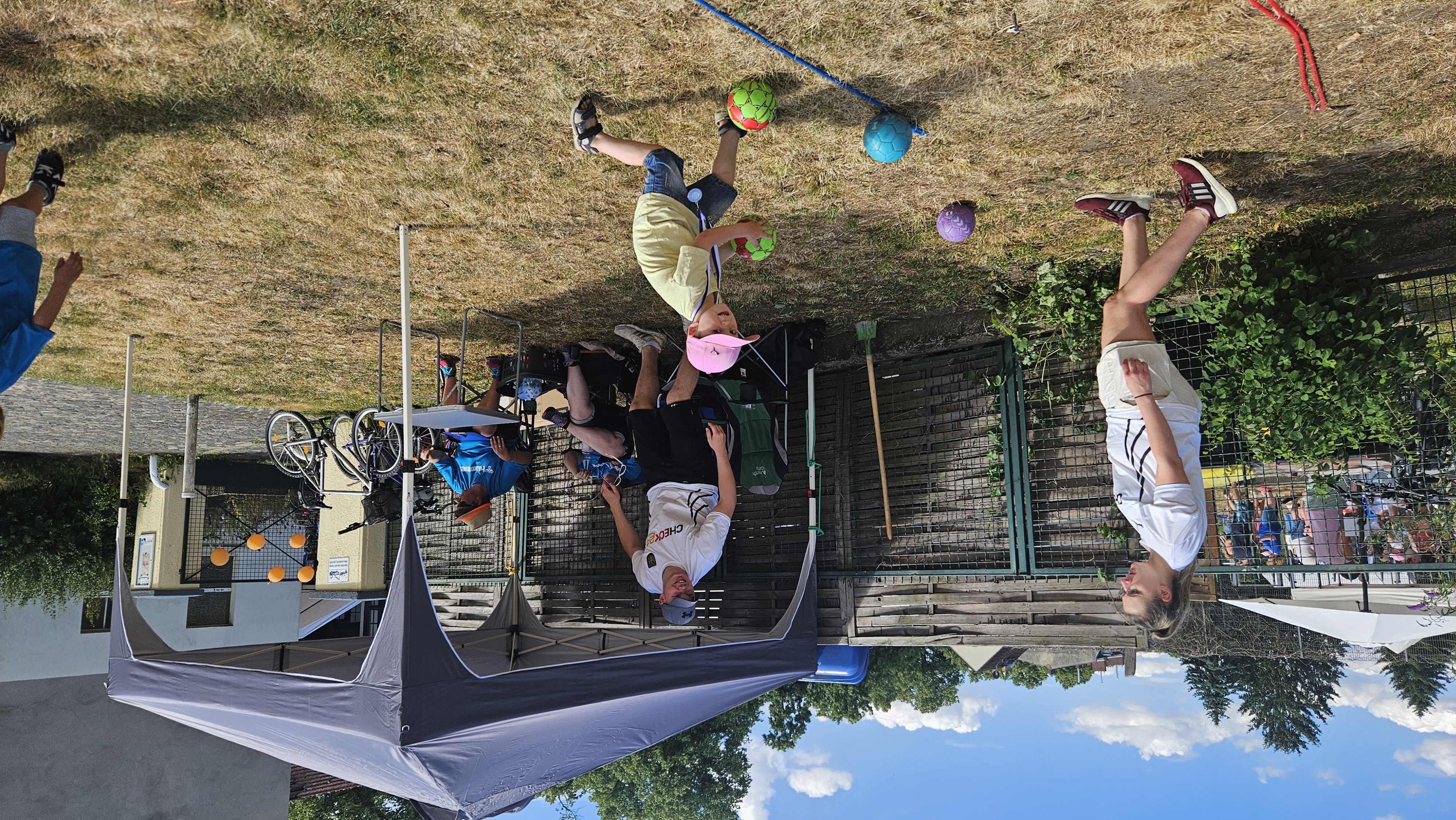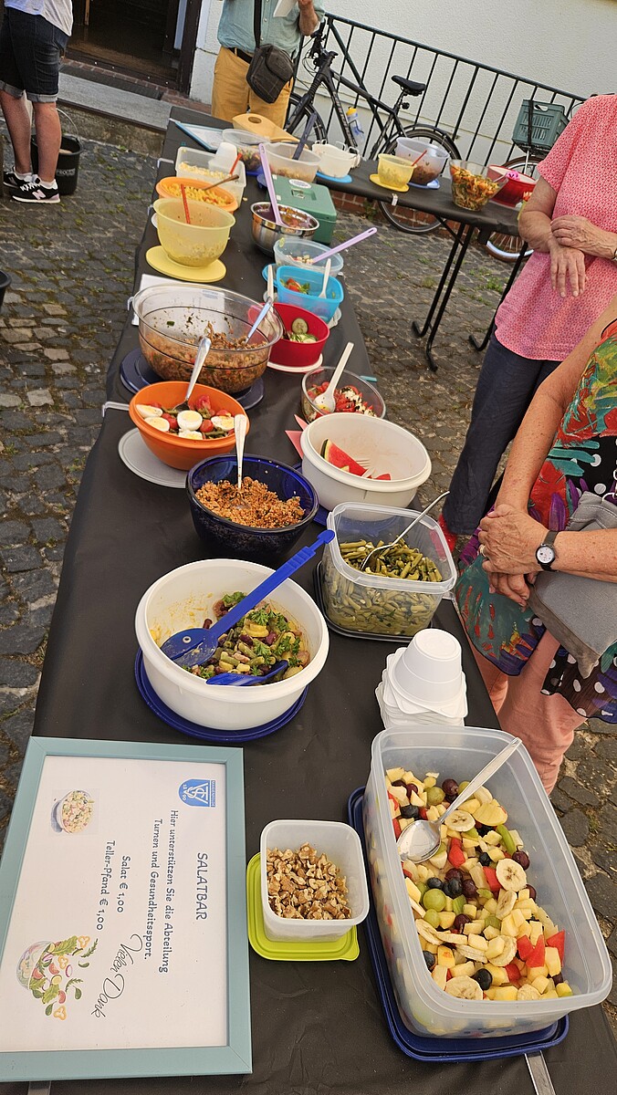 Für die gute Laune war reichlich gesorgt! Nicht nur die Kids hatten riesigen Spaß auf der beliebten Hüpfburg, auch für das leibliche Wohl der Erwachsenen war bestens gesorgt. Die Abteilungen haben sich richtig ins Zeug gelegt: Die Motorsportler sorgten am Bierstand mit der erfrischenden Himbeer-Bowle für das absolute Highlight. Parallel dazu gab es leckere Würstchen vom Grill der Teppichcurler, eine frische Salatbar der Abteilung Turnen und einen unwiderstehlichen Kuchenbasar der Abteilung Prellball.